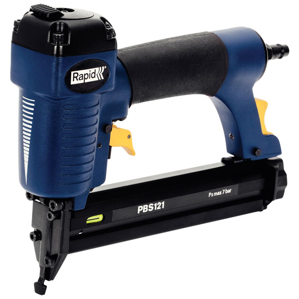 The Rapid Airtac PBS121 Pneumatic Stapler/Nailer is one of the handy range of pneumatics, small and lightweight and ideal for DIY. The dual magazine fires both staples and brads, applications include panelling, furniture repair, refurbishing work, finish and trim. It has a 20mm nose with a no-mar pad to protect surfaces and a flat front for easy access in difficult areas.