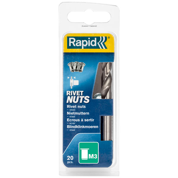 Rapid 5000670 Steel Rivet Nuts M3 (Pack 20 + Free Drill Bit)