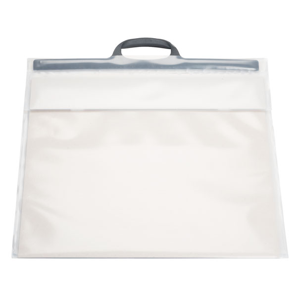 Strong, waterproof bags with flap and handle, made in the UK from heavyweight polythene, reinforced with board for rigidity. Ideal for transporting and storing flat artwork.