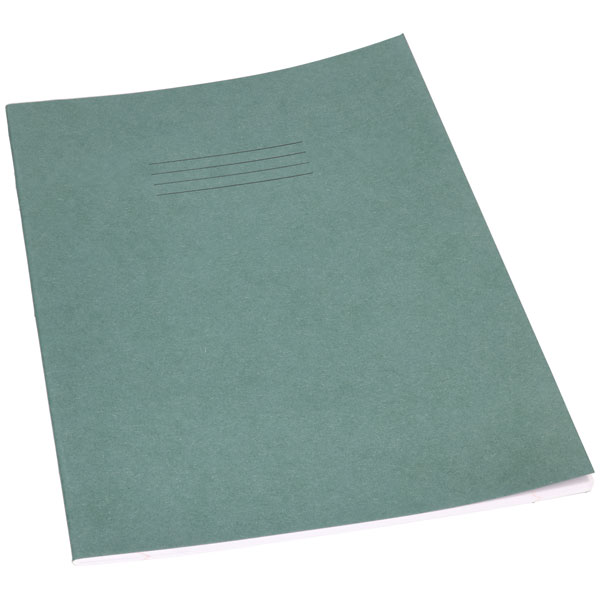 8mm ruled 80-page A4 exercise book with dark green cover, with margin.