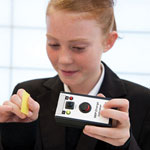 When, for example, a polythene rod is rubbed using a piece of cloth, the green LED comes on when it is brought near the polythene, and red near the cloth. This demonstrates how negative charge has been transferred from the cloth to the rod.