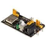 This RVFM breadboard power supply provides both 3.3 and 5V DC to suit all popular microcontrollers such as the Arduino. The board will accept 6.5 to 12V DC input. It provides two regulated outputs which can be jumper selected to be 3.3V, 5V or Off. There is a USB A socket so that the device is ideal for powering development boards such as the Arduino. There are two sets of header pins which plug into the breadboard allowing you to minimise the number of tie points you use or to maximise the stability of the PSU. More header pins are available on the top of the board if you need to use flying lead connections. The board is equipped with an on/off switch and a power indicator LED.