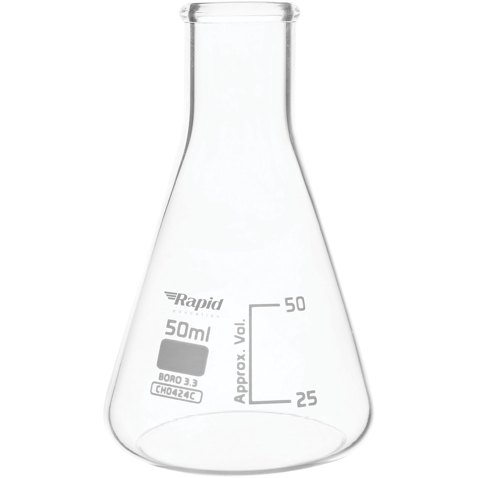 Rapid EGL0424C Conical Flask with Narrow Neck, 50 ml pack of 12