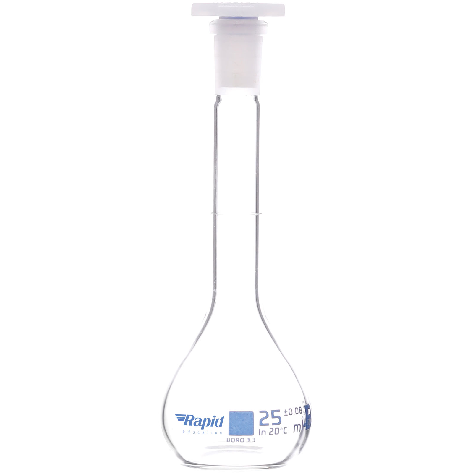 Rapid EGL0448C Volumetric Flask with PE Stopper, Class-B, 25 ml pack of 10