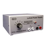 This lo-volt power supply unit provides voltages of 2, 4, 6, 9, 12 or 14V AC or unsmoothed DC at 4A continuously, or up to 5A for periods of 1 hour. Voltages are selected by means of a rotating switch on the front panel. In any case of overload, including direct short, a current sensing circuit-breaker mounted on the front panel will operate and disconnect the output voltage. Outputs are taken from colour coded 4mm sockets mounted on the front panel. An illuminated on/off switch is mounted on the rear panel adjacent to a fused appliance inlet.