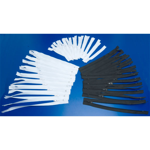 Pack of 30 assorted 4-inch and 8-inch white and 8-inch black zip fasteners.