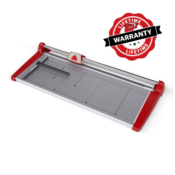 Razorback Heavy Duty Rotary Trimmers are designed for use in busy school and office environments. Each trimmer has a strong metal base, printed size guides for accuracy, and a long-life, self-sharpening blade that makes them ideal for heavy use. This A2 trimmer can cut up to 16 x 80gsm sheets at once up to a length of 670mm (A2). Lifetime warranty.