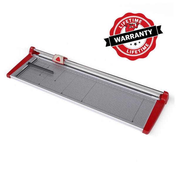 Razorback Heavy Duty Rotary Trimmers are designed for use in busy school and office environments. Each trimmer has a strong metal base, printed size guides for accuracy, and a long-life, self-sharpening blade that makes them ideal for heavy use. This A1 trimmer can cut up to 15 x 80gsm sheets at once up to a length of 960mm (A1). Lifetime warranty.