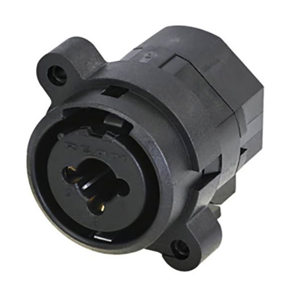 The Rean AV RCJ10FI-V-0 XLR connector features a 3-pin socket configuration. It is commonly used in audio and video applications for reliable connectivity. This single-piece connector is known for its durability and precise performance in professional audio equipment.