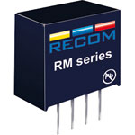 This Recom RM-0512S DC/DC converter is from the RM series. It has been designed for isolating or converting DC power rails with very light loads. The 0.25W single output converter has an efficiency that is typically 10% higher than a comparable 0.5W or 1W converter run at the same low load.