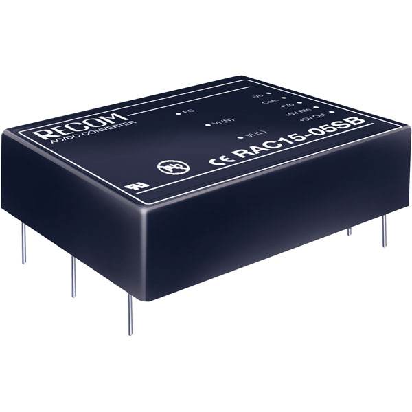 This Recom 15W Dual Output Regulated AC-DC Power Supply is from the RAC15-D Series. This compact switching power supply module has a wide input voltage range of 85V to 264V plus an I/O Isolation of 4kVDC as standard. It is for PCB mounting and offers continuous short-circuit protection. The power supply has an efficiency of up to 80% and ideal for a variety of applications, and carries the medical certification UL-60601-1.