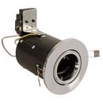 This Red Arrow FG fire rated GU10 tilt downlighter is available in chrome with a die cast aluminium bezel and a pressed steel body. It is both fire and sound resistant without the need for a separate fire hood. No special fitting is required, these downlighters are as simple to fit as conventional designs.