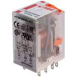 A standard 12A industrial relay with a 2CO (DPDT) contact arrangement. The relay features a locking test button, flag indicator and LED indicator. Suitable for general purpose use in control panels and other control applications.