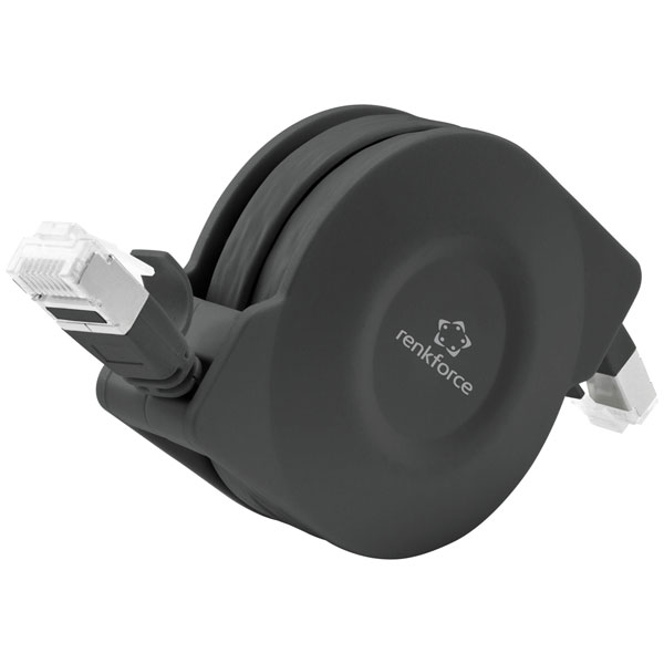 Renkforce RF-4476386 is a flat, black Ethernet cable designed to meet the specifications of CAT 6A U/FTP with a length of 1.50 metres. This RJ45 network cable is ideal for high-speed data transmission, providing reliable performance up to 10 Gbps with reduced crosstalk and electromagnetic interference, thanks to its shielded twisted pairs construction. It is particularly suitable for use in environments where space is a constraint due to its flat design, making it easy to run along walls, under carpets, or through tight spaces. This network cable is applicable in engineering scenarios such as connecting devices within local area networks, linking computers to routers, switches, or patch panels in data centres, and fulfilling the demands in high-bandwidth applications. The inclusion of a recoiler enhances cable management and storage, ensuring its convenience in varied technical setups.