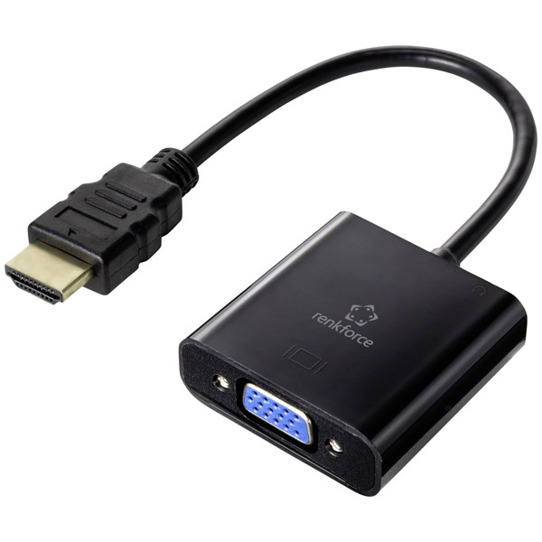 Renkforce RF-4531578 HDMI/VGA Adapter Cable Black 0.15m 15pin Skt Double Shield