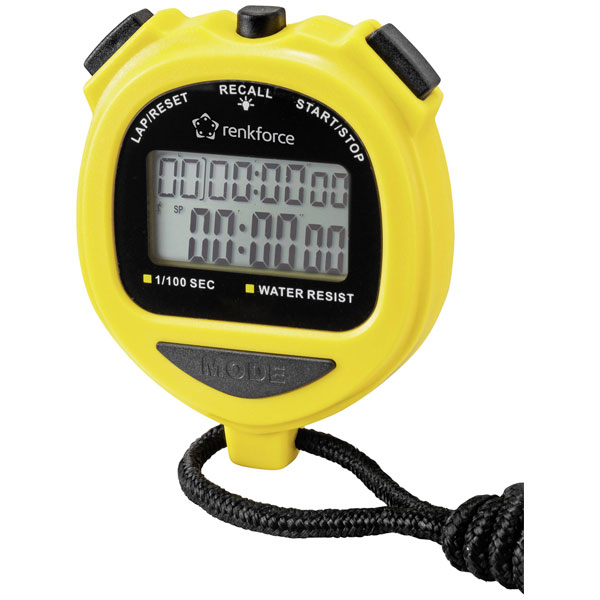 Renkforce RF-4612986, also identified as 2306493 - Renkforce RF-4612986, is a digital stopwatch designed for precision timing applications. Featuring a yellow casing for enhanced visibility, the device offers reliable performance with its accurate time measurement capabilities, suitable for both industrial and educational environments where precise interval recording is essential. The stopwatch's functionality includes split-time measurement, making it ideal for laboratory experiments, sports engineering analyses, and other activities requiring stringent time tracking. Its ergonomic design ensures ease of use, while the digital display provides clear readouts, supporting both field applications and controlled laboratory settings. Engineered for durability, the Renkforce RF-4612986 is a dependable tool for professionals demanding accuracy in time-sensitive projects.