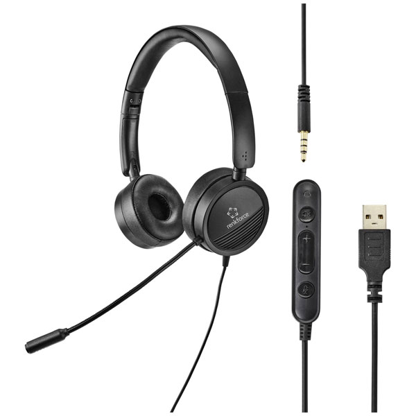 Renkforce RF-4737358 On-ear headset Corded Stereo Black Volume control Mute