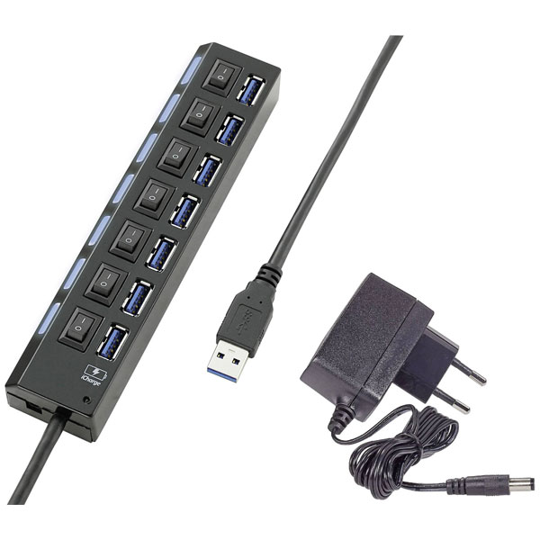 Renkforce RF-4821051 USB 3.0 hub 7 ports connectable LED iPad charge Black