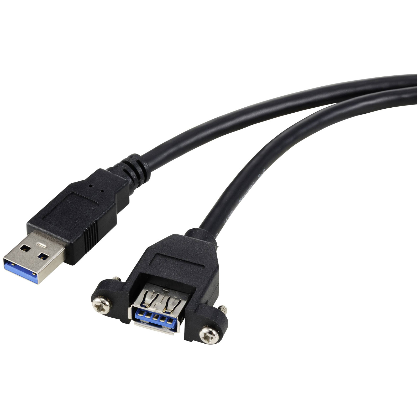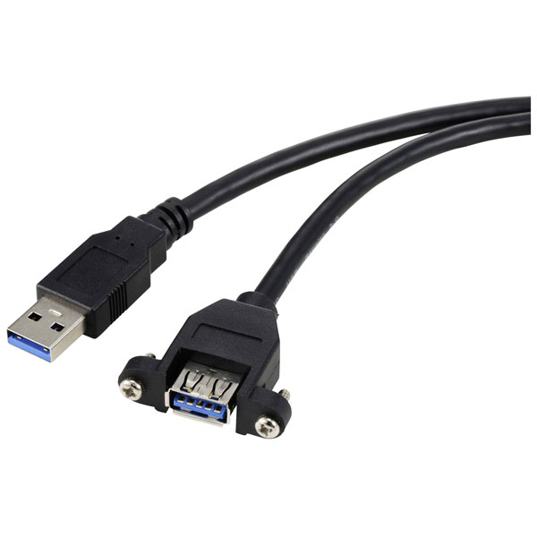 Renkforce RF-5720388 is a high-quality USB cable assembly designed for reliable recess-mounted applications. This 1.00-metre cable features a USB 3.0 Type A plug and a corresponding USB Type A socket, encased in a durable black exterior to ensure robust performance and longevity. Engineered with screwable connectors, it is ideal for secure mounting in panel installations where a firm connection is vital. Such attributes make it particularly suitable for use in industrial control systems, data transfer terminals, and any environment requiring stable, long-lasting USB connections.
