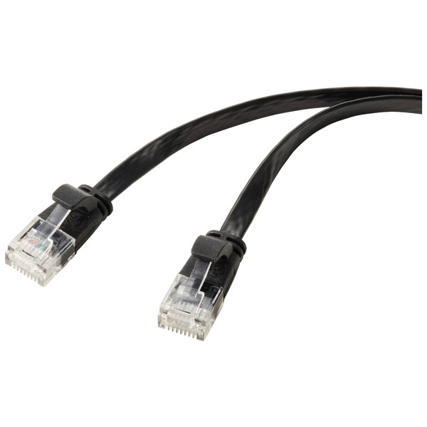 Renkforce RF-5771530 is a robust RJ45 network cable designed for efficient data transmission in local area networks. This 0.50-metre network cable, encased in black PVC insulation, serves as a reliable link for connecting network equipment such as routers, switches, and personal computers in both residential and commercial settings. Engineered as a patch cable, it features an RJ45 connector at each end, ensuring seamless integration with standard Ethernet ports. The product's physical composition and compliance with networking standards make it suitable for applications requiring quick setup and consistent performance in structured cabling systems, thus supporting various Ethernet-based communication protocols.
