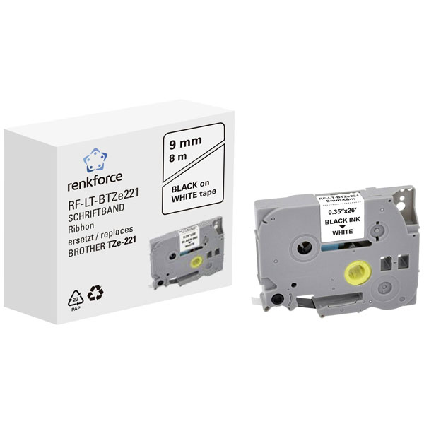 Renkforce RF-6027516 is a labelling tape designed specifically for use in label machines, matching the model RF-LT-BTZe221 and serving as a compatible replacement for Brother TZe-221 tapes. This tape features a width of 9 mm and is characterised by its white background colour, which provides clear contrast for black text, ensuring legibility and precision in labelling tasks. The Renkforce labelling tape is suitable for various engineering applications including equipment labelling, wiring and cabling identification, and general organisational tasks within technical environments where clear and durable labels are required. Its compatibility with certain label machines facilitates straightforward integration into existing systems, making it a practical choice for workspace organisation and documentation.