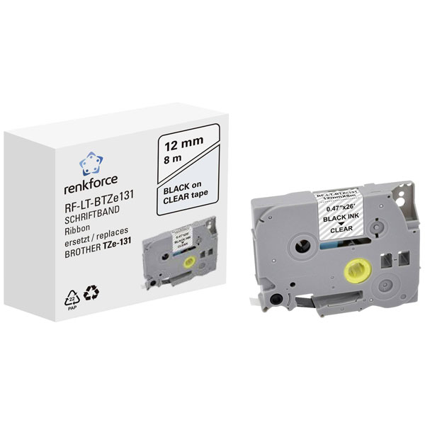 Renkforce RF-6027796 is a labelling tape designed for precision and reliability in office and industrial settings. This labelling tape, model RF-LT-BTZe131, serves as a compatible replacement for Brother TZe-131, and it features a transparent tape with black font, measuring 12 mm in width and 8 m in length. Its durable construction is suitable for creating clear and long-lasting labels, ideal for use with label machines in environments requiring efficient asset management, inventory labelling, and organisational tasks. The versatile and robust characteristics of this labelling tape make it an excellent choice for engineers needing dependable solutions for labelling components, equipment, and storage systems.