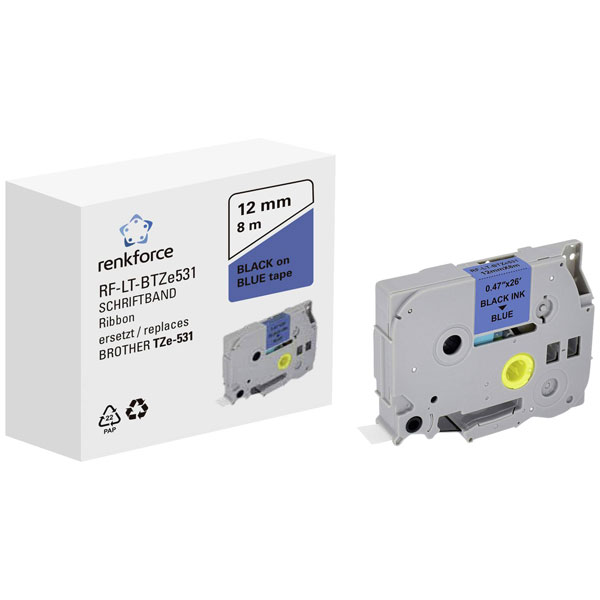 Renkforce RF-6027826 Labelling tape 12 mm Blue Tape 8 m Black Font
