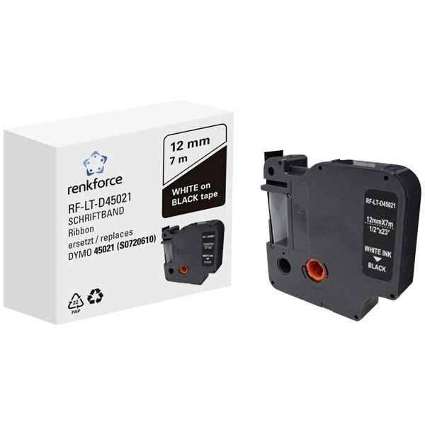 Renkforce RF-6027830 Labelling tape Black White 12mm x 7m