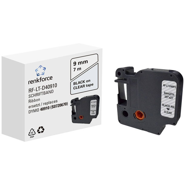 Renkforce RF-6027842 Labelling tape Transparent Black 9mm x 7m