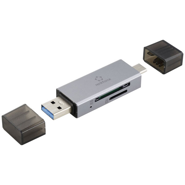 Renkforce RF-6179482 serves as a versatile external memory card reader, identified as the RF-PCR-400 model, engineered to offer seamless connectivity through both USB type A and USB C® interfaces. This device, finished in space grey, supports multiple card formats, specifically microSD and SD cards, making it an ideal solution for data transfer and storage expansion in fields requiring high data throughput and storage flexibility. Its dual-interface design enhances compatibility with a variety of systems, such as laptops and desktop computers, offering engineers and IT professionals a reliable tool for data management and processing tasks in environments that demand cross-platform data access. The robust construction of the Renkforce RF-PCR-400 ensures dependable performance, particularly useful in development settings where durable and adaptable hardware components are crucial.