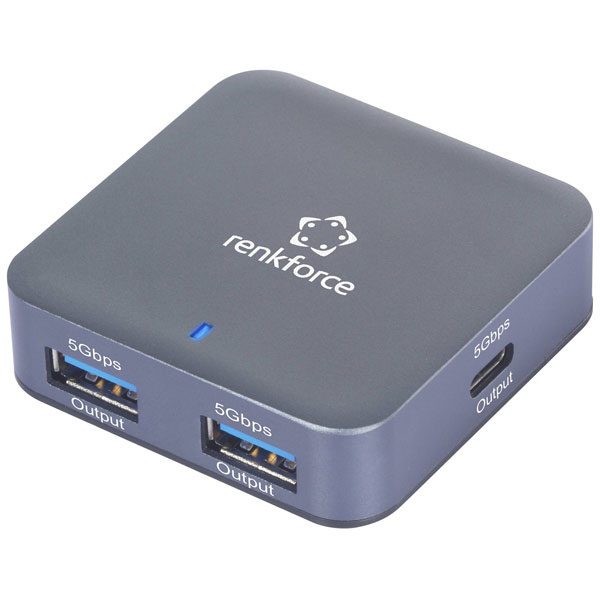 Renkforce RF-6410438, also known as the RF-USBH-480 4 ports USB 3.2 1st Gen (USB 3.0) hub, is an advanced connectivity solution designed for efficient data management and expansion in computing systems. This device features a robust aluminium casing for enhanced durability and heat dissipation, finished in an understated grey. It provides four high-speed USB 3.2 ports, ensuring swift data transfer rates up to 5 Gbps, which is ideal for connecting various peripherals such as external hard drives, keyboards, and other USB-enabled devices. The hub is particularly valuable in engineering applications that require reliable data transfer between multiple USB devices and a host computer, such as in laboratory settings or for technical workstations that demand the consolidation of multiple data streams. Designed with compatibility and efficiency in mind, this hub supports the seamless integration of USB peripherals, making it a practical component in both professional and personal computing environments.