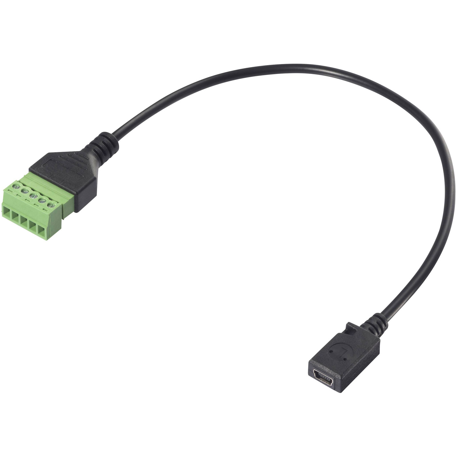 Renkforce RF-6443962 adapter cable is designed for connecting devices with a USB 2.0 Mini B port to clip terminals, offering a reliable solution for various technical applications. This cable, measuring 30 cm in length, features a robust PVC coating that enhances durability and flexibility, making it suitable for demanding environments. The cable facilitates data transfer in setups where direct connection is not possible, such as interfacing small electronic components with field wiring or within prototype testing environments. Engineers commonly utilise this adapter cable in automation systems, laboratory settings, and for connecting sensors and peripherals in testing rigs where a conventional USB interface is not feasible. Its construction ensures stable electrical connectivity, ensuring efficient communication and data integrity between connected devices.