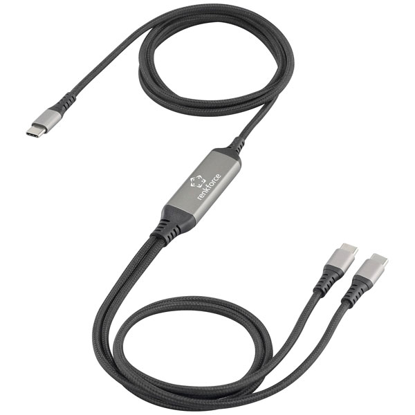 Renkforce RF-6721084 is a USB-C Y-cable assembly designed to facilitate connectivity in various electronic configurations. This 1.50-metre cable is equipped with a USB 2.0 plug and features a black finish, offering a robust and versatile solution for power and data transmission tasks. The dual USB-C connectors make it suitable for applications where a dual input or output is required, such as connecting multiple devices to a single host system or simultaneously charging and transferring data between devices. Its compatibility with USB 2.0 standards ensures reliable performance in both consumer electronics and professional engineering environments. This product is particularly useful in setups requiring flexibility and efficient use of space without compromising functionality or data integrity.
