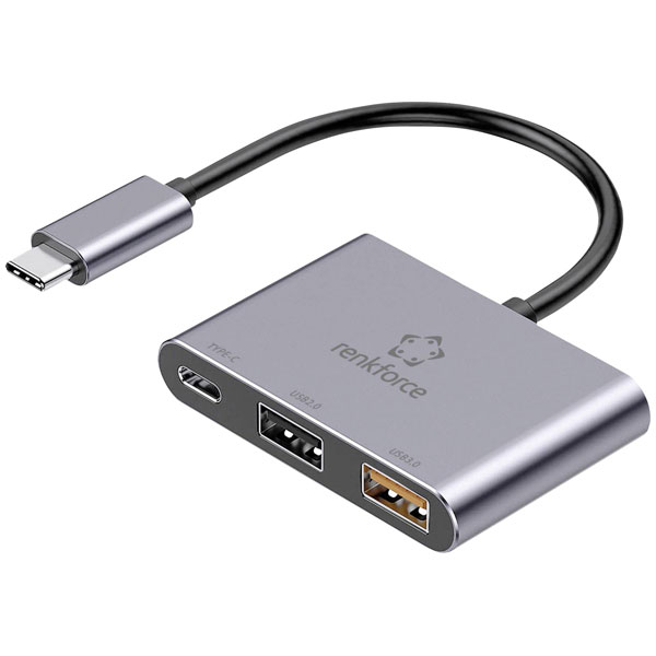 Renkforce RF-6735680 RF-TCH-100 USB 3.0 hub USB C connector Grey