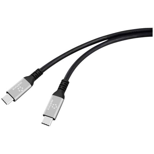 Renkforce RF-6805036 USB4 cable USB-C plug Black Aluminium Silicon 1 m