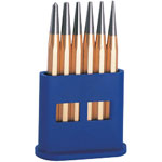 This set of 6 taper punches from Rennsteig is supplied in a plastic stand. Made of chrome-vanadium air-hardened steel , the set includes punches with a diameter of 1mm, 2mm, 3mm, 4mm and 5mm, plus a 4mm centre punch.