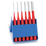 This set of 6 exclusive pin punches from Rennsteig is supplied in a metal case. It includes red powder-coated punches with a diameter of 3mm, 4mm, 5mm, 6mm, 8mm and 10mm.