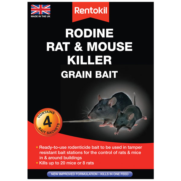 Rentokil Rodine Rat & Mouse Killer Grain Bait is a ready-to-use bait for use in a tamper resistant bait station. Kills in a single feed. Suitable for indoor and outdoor use, in and around buildings.