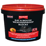 Rentokil Rat & Mouse Weatherproof Blocks are ready-to-use bait for use in a tamper resistant bait station. Kills in a single feed. Hard-wearing blocks, ideal for use outdoors but can also be used indoors, in and around buildings. Available in tubs of 5 or 10, enough for most large infestations.