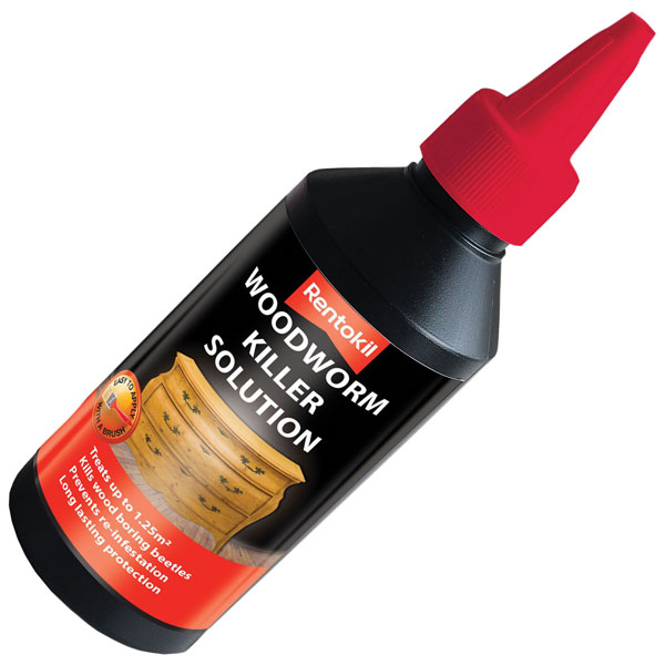 Rentokil Woodworm Killer Solution is highly effective. It provides long lasting protection against woodworm. Easy to apply, for indoor use. Low odour. Contains Permethrin.