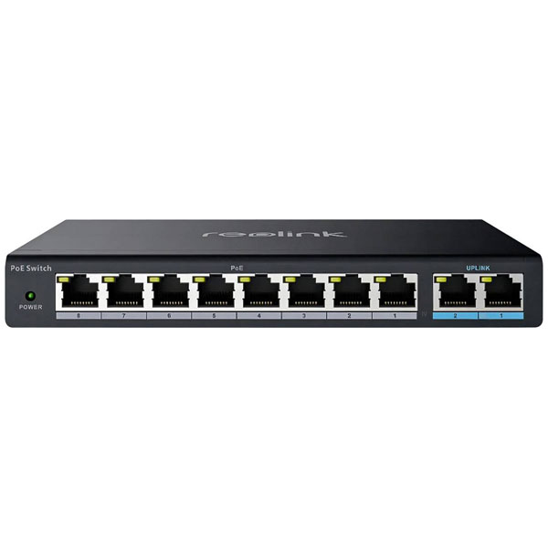 Reolink RLA-PS1 PoE Switch with 8 PoE+ Ports, 2 Gigabit Uplink Ports, 120W.