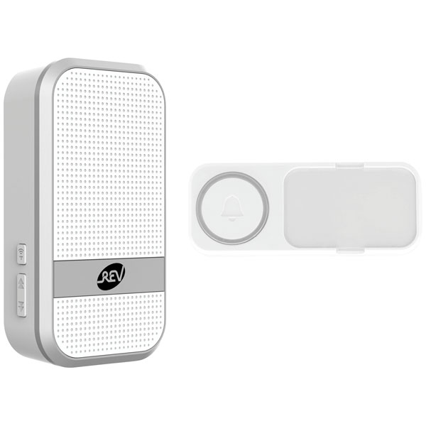 The REV 0082620103 Wireless Door Chime is a complete set that includes a battery-operated, white doorbell. It features wireless technology for easy installation without the need for additional wiring. Typically used for residential or commercial entrances, this product provides a convenient and efficient way to announce visitors.