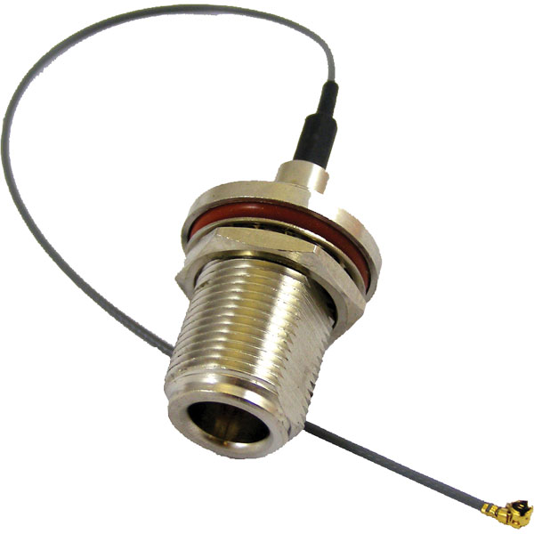 A type N bulkhead socket to UFL cable assembly from RF Solutions.