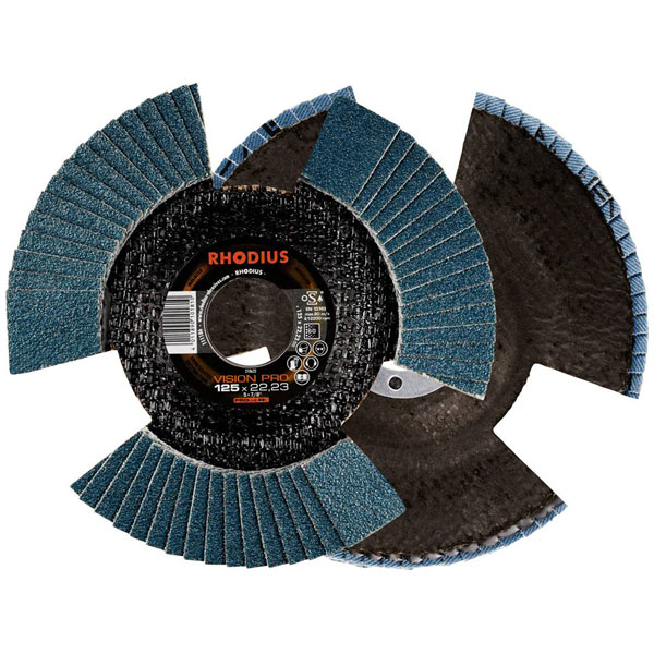 Rhodius' Vision Pro Pack includes five flap discs with a diameter of 125 mm and a bore diameter of 22.23 mm, suitable for abrasive tasks. These durable flap discs are designed for efficient grinding and finishing applications, particularly on metal surfaces. Ideal for professional use, they offer precision and longevity in metalworking projects.