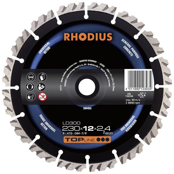 Rhodius 304465 LD300 Diamond Cutting Disc 230mm For Concrete & Grinders