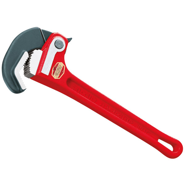 The RIDGID Heavy-Duty RapidGrip® Wrench has a quick one-handed operation with a spring-loaded jaw design that provides a rapid ratcheting action. The unique combination heel/hook jaw design aggressively bites the workpiece and ensures a secure grip.