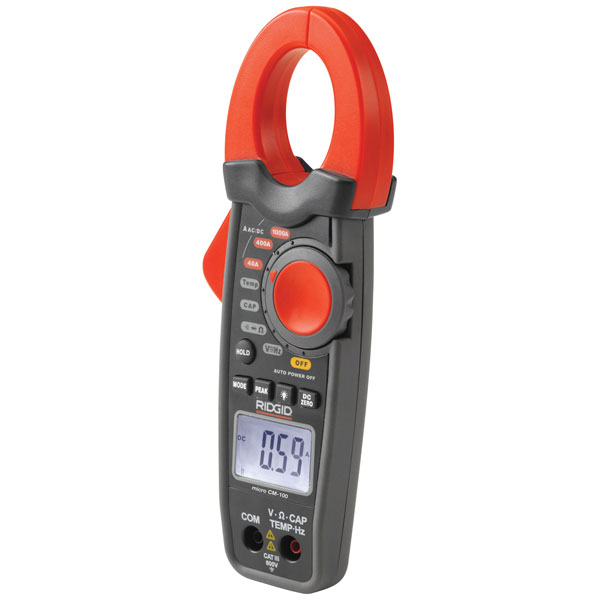 The Ridgid CM-100 Micro Clamp Meter is a true RMS and AutoRanging digital clamp meter with a large capacity and measuring range. It can clamp around cables up to 30mm O.D. and measure current up to 1,000A AC/DC.