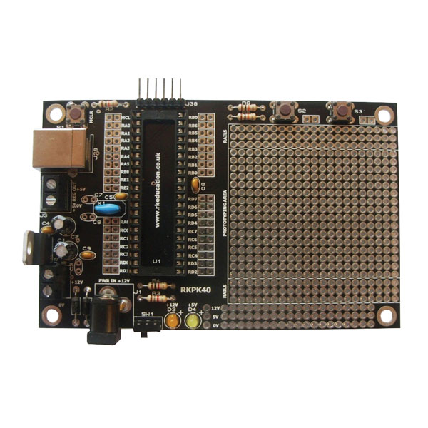 A set of parts to make an RKPK40 Prototype Project Board designed to be fully compatible with PIC® and PicKit®.