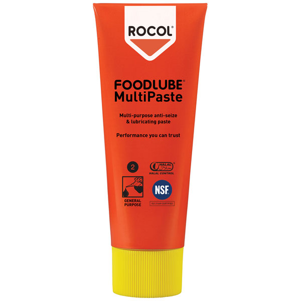 Rocol's FOODLUBE Multi-Paste is a white non-toxic, anti-seize lubricating paste designed for use in catering, pharmaceutical and other clean environments. It is ideal for the assembly and lubrication of: threads, bushes, slides, small open gears and fasteners and is suitable for use as a food grade drilling, tapping and cutting lubricant, particularly when maintenance has to be carried out in the process area.