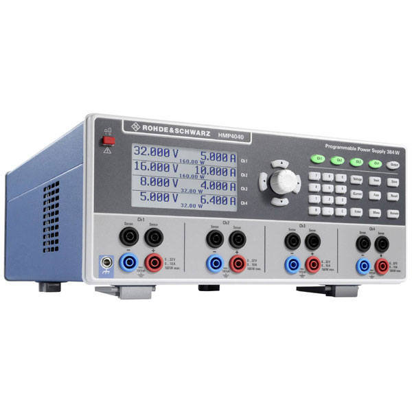 The Rohde & Schwarz HMP4040 Bench PSU is an adjustable power supply unit with a maximum output of 32 V and 10 A, providing up to 384 W. This remote-controlled, programmable laboratory power supply unit features four outputs, making it suitable for various industrial and laboratory applications. Ideal for testing and development environments, it offers precise voltage adjustments and easy integration into automated systems.